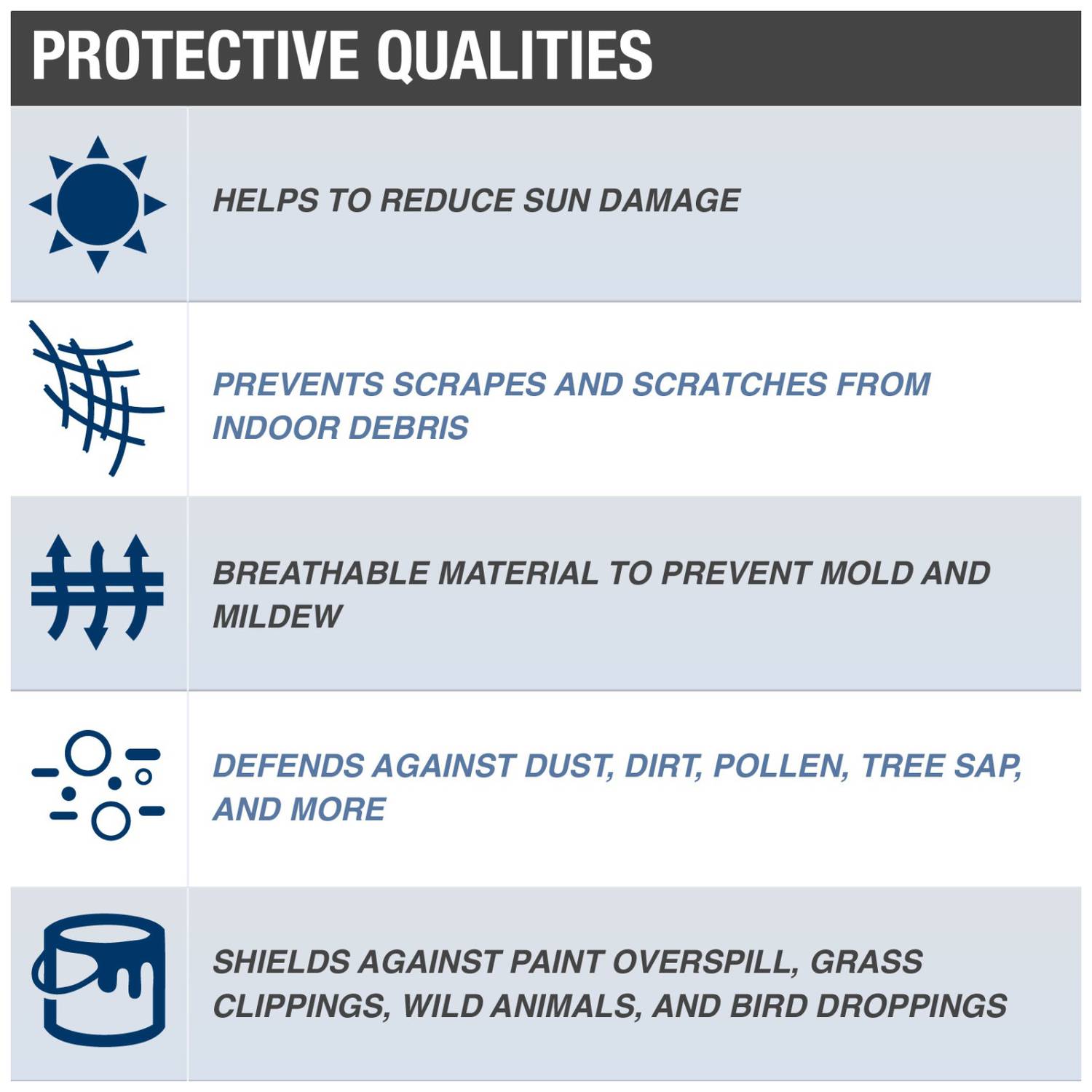 Fits cars up to 200 L x 60 W x 51 H. 157 L x 60 W x 48 H 10720. The Protector V car cover features 5 ultrasonically welded layers to ensure 100 waterproof protection.